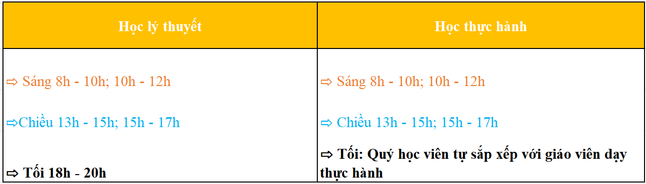 ♦ Thời gian học linh hoạt cho học viên sắp xếp, để phù hợp với thời gian và công việc của mỗi người